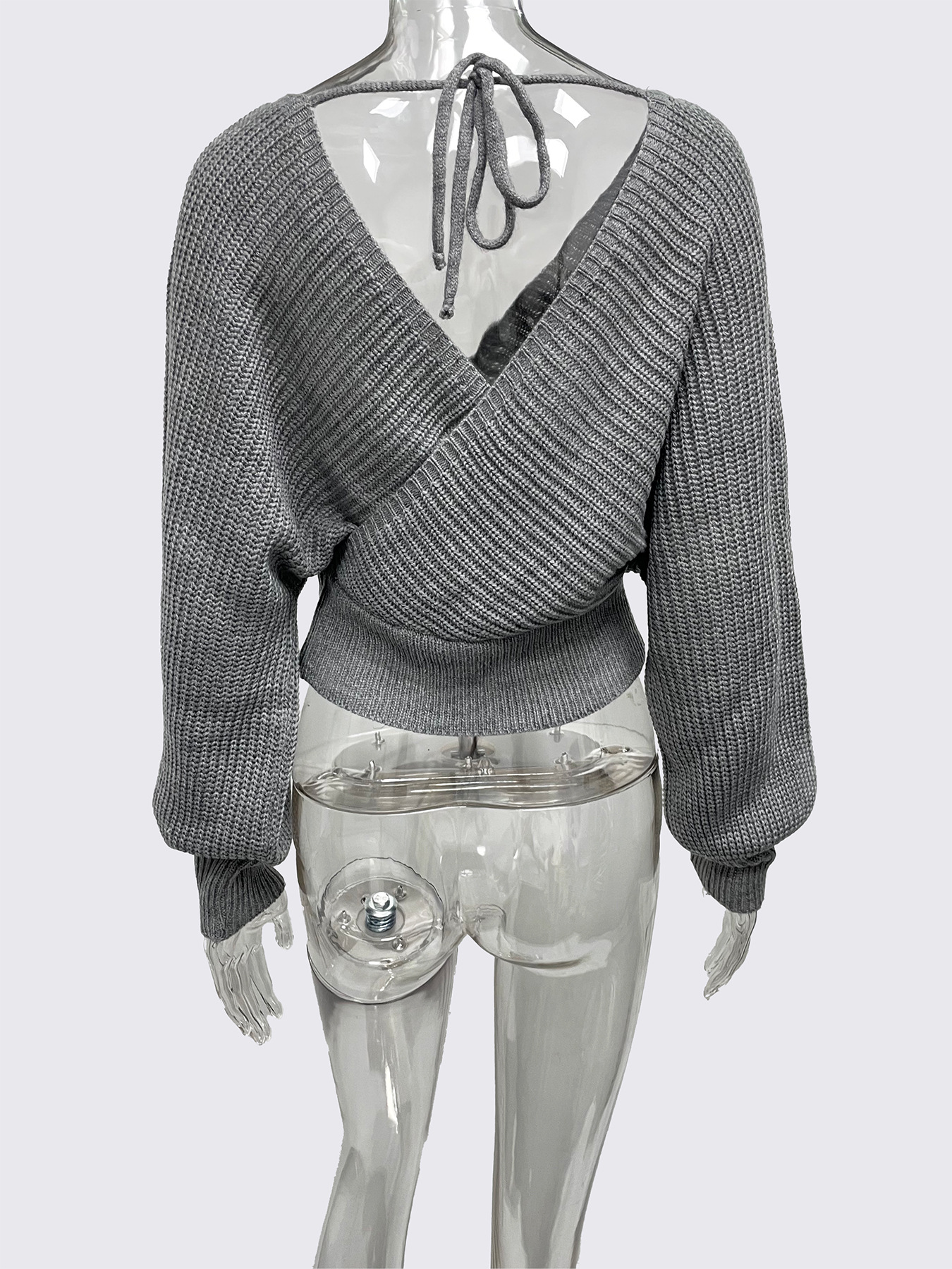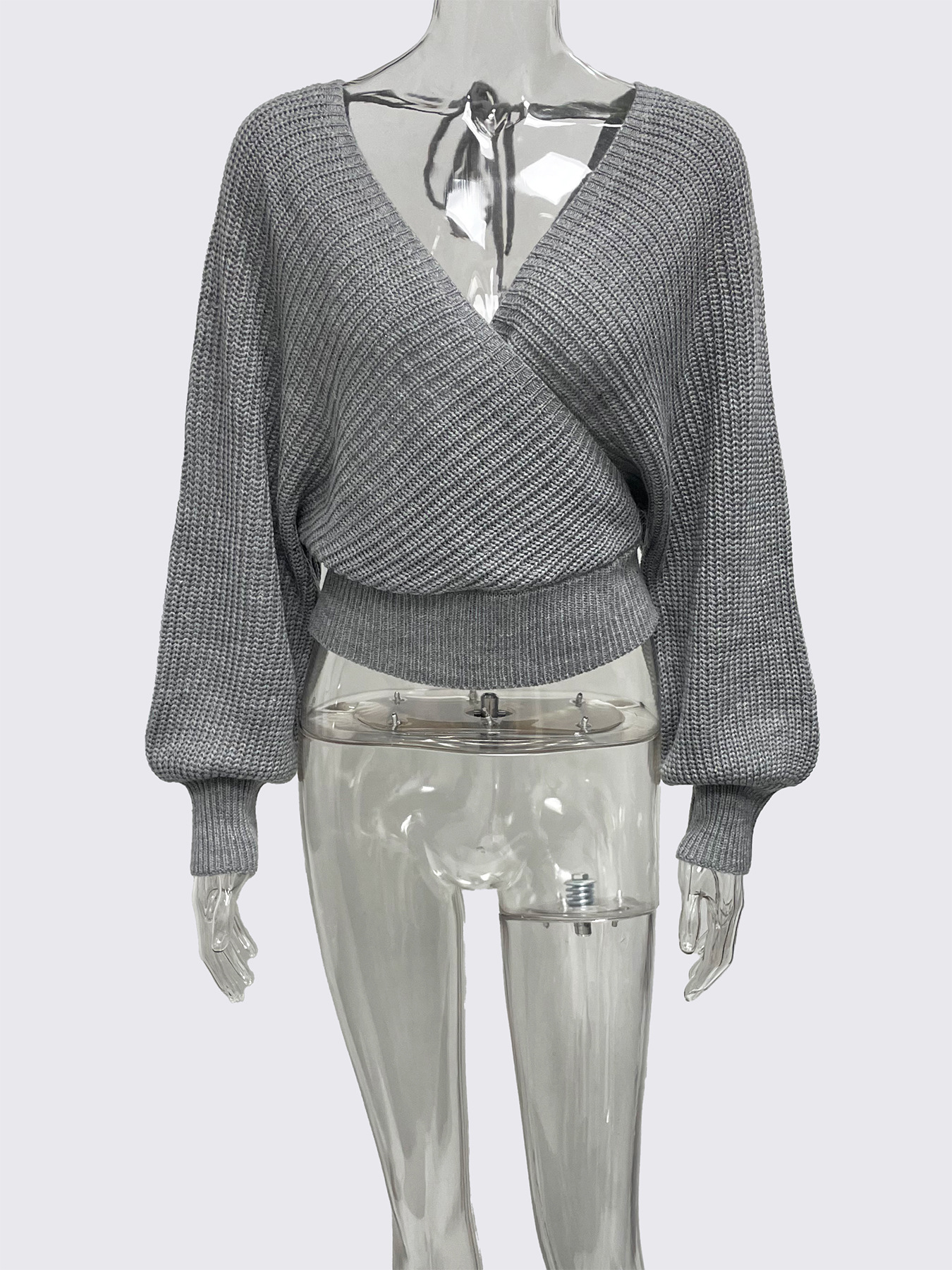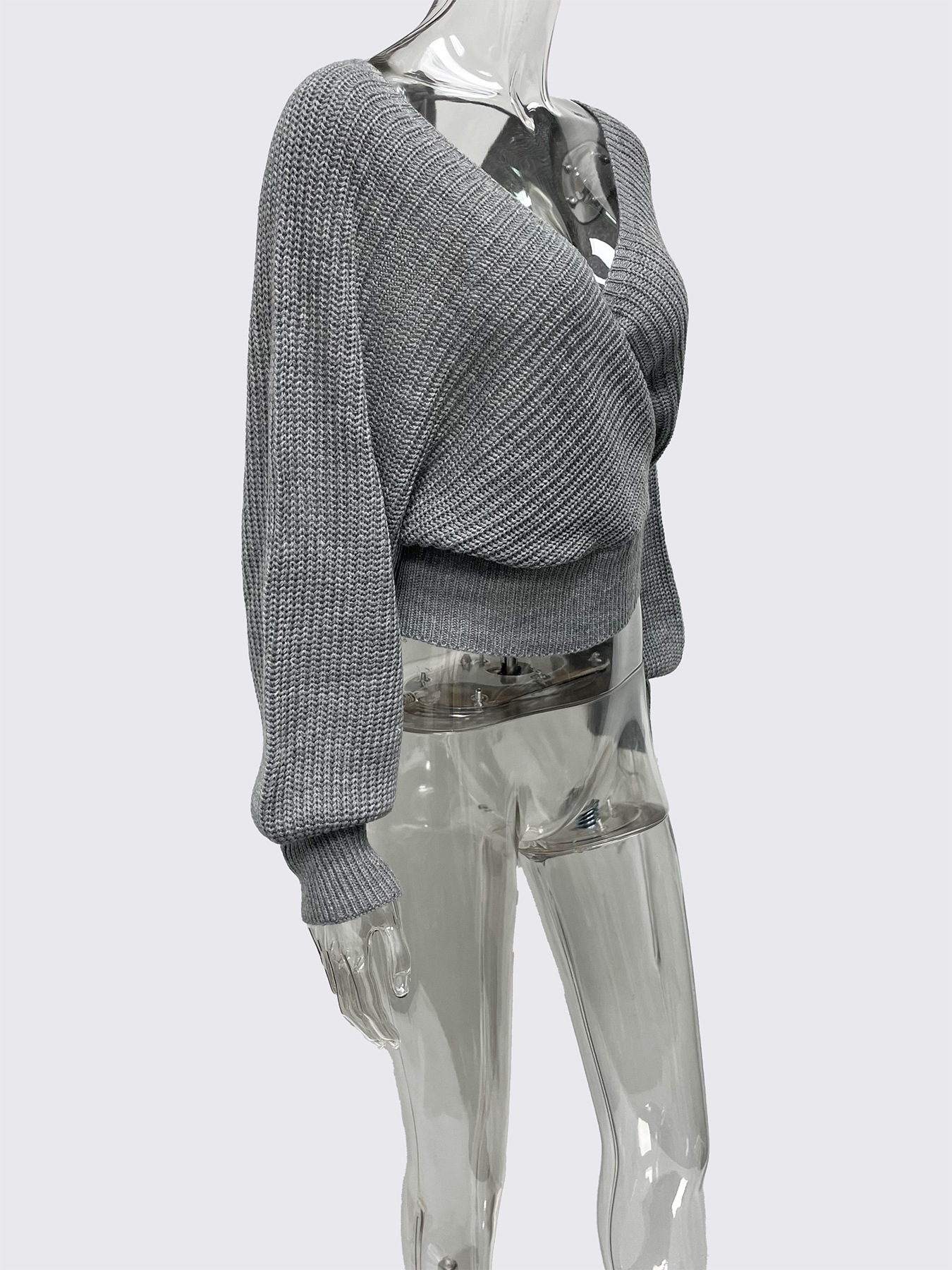 Cropped V-neck Long-sleeve Pullover Knit Sweater