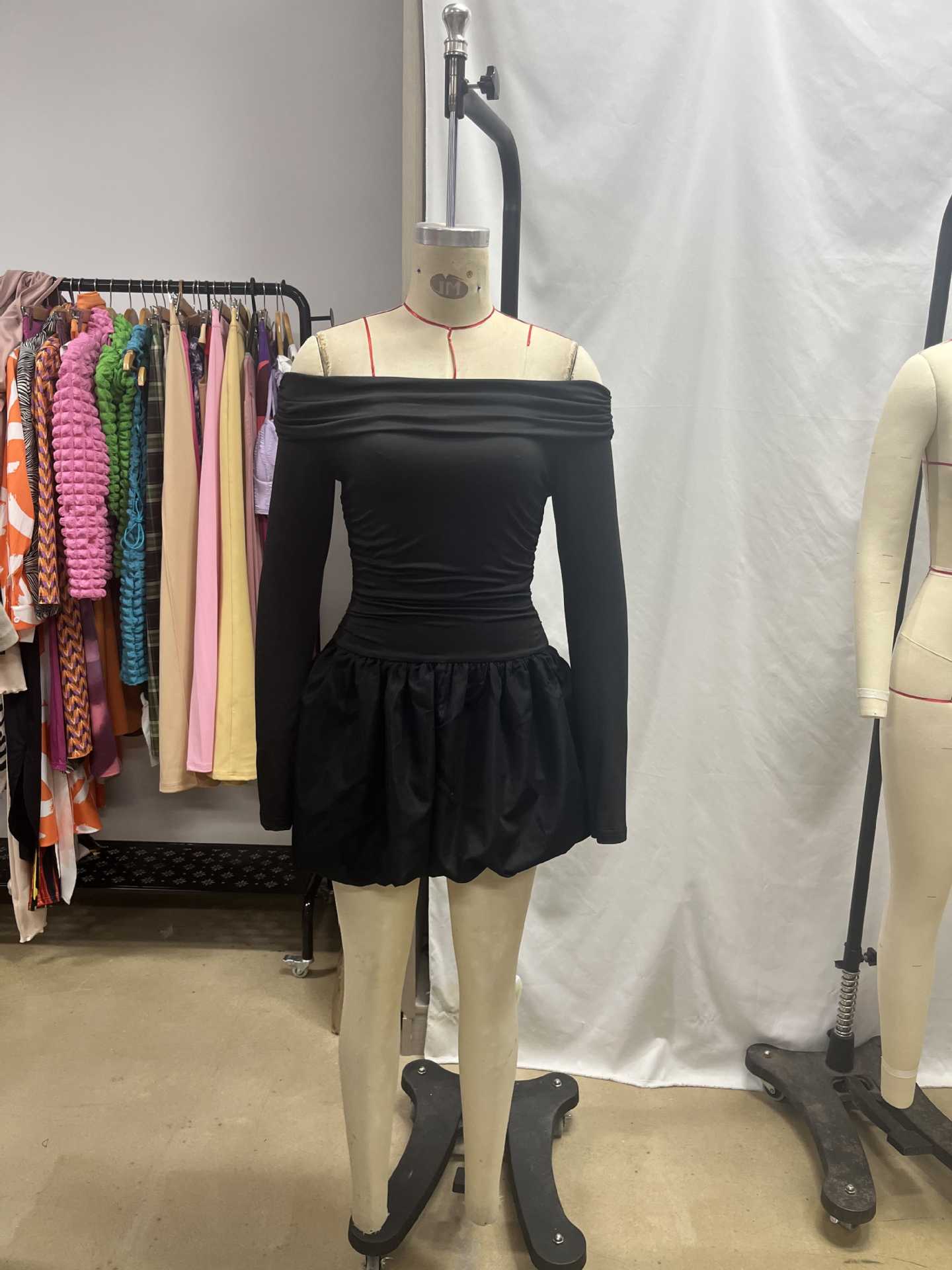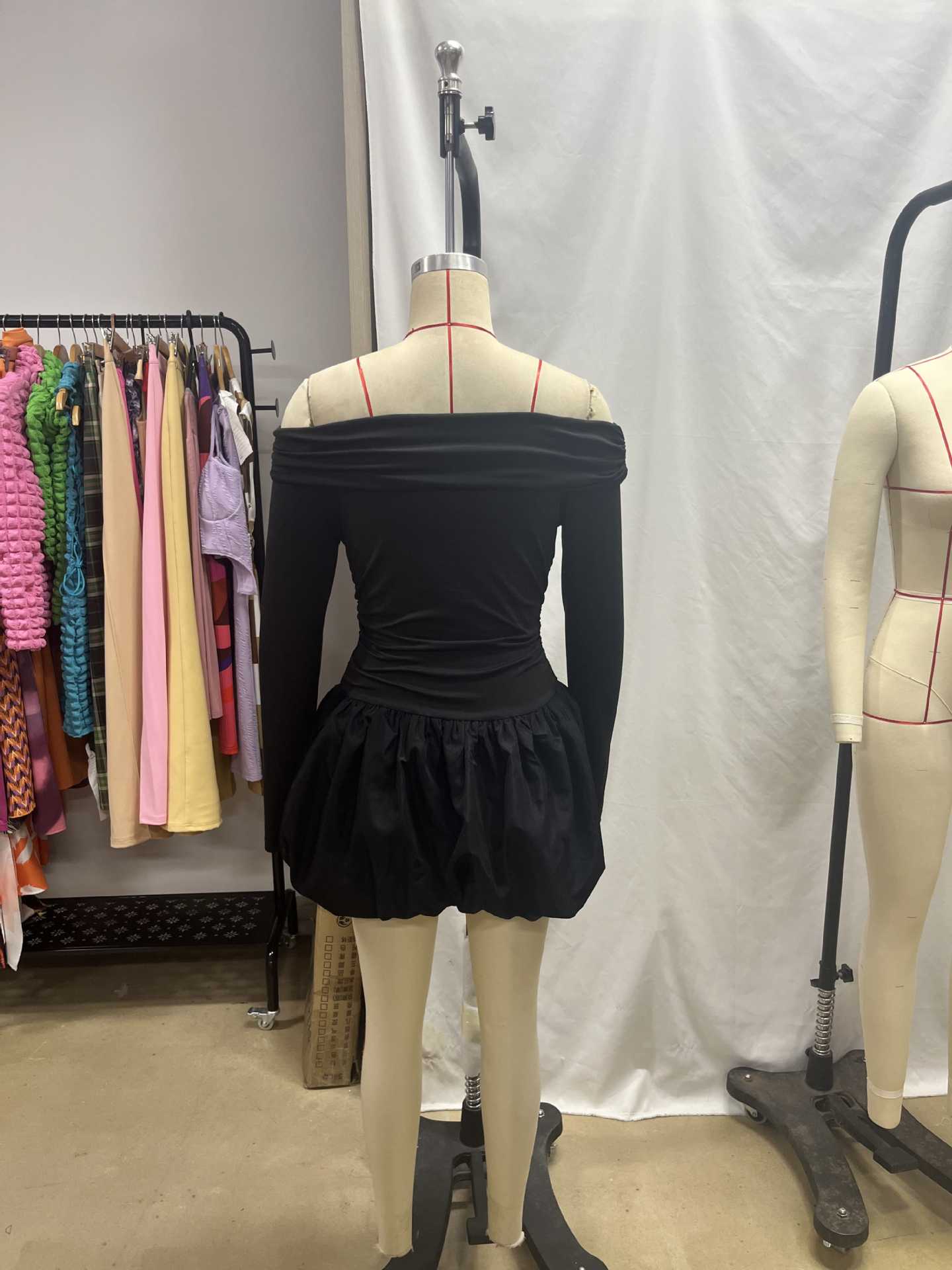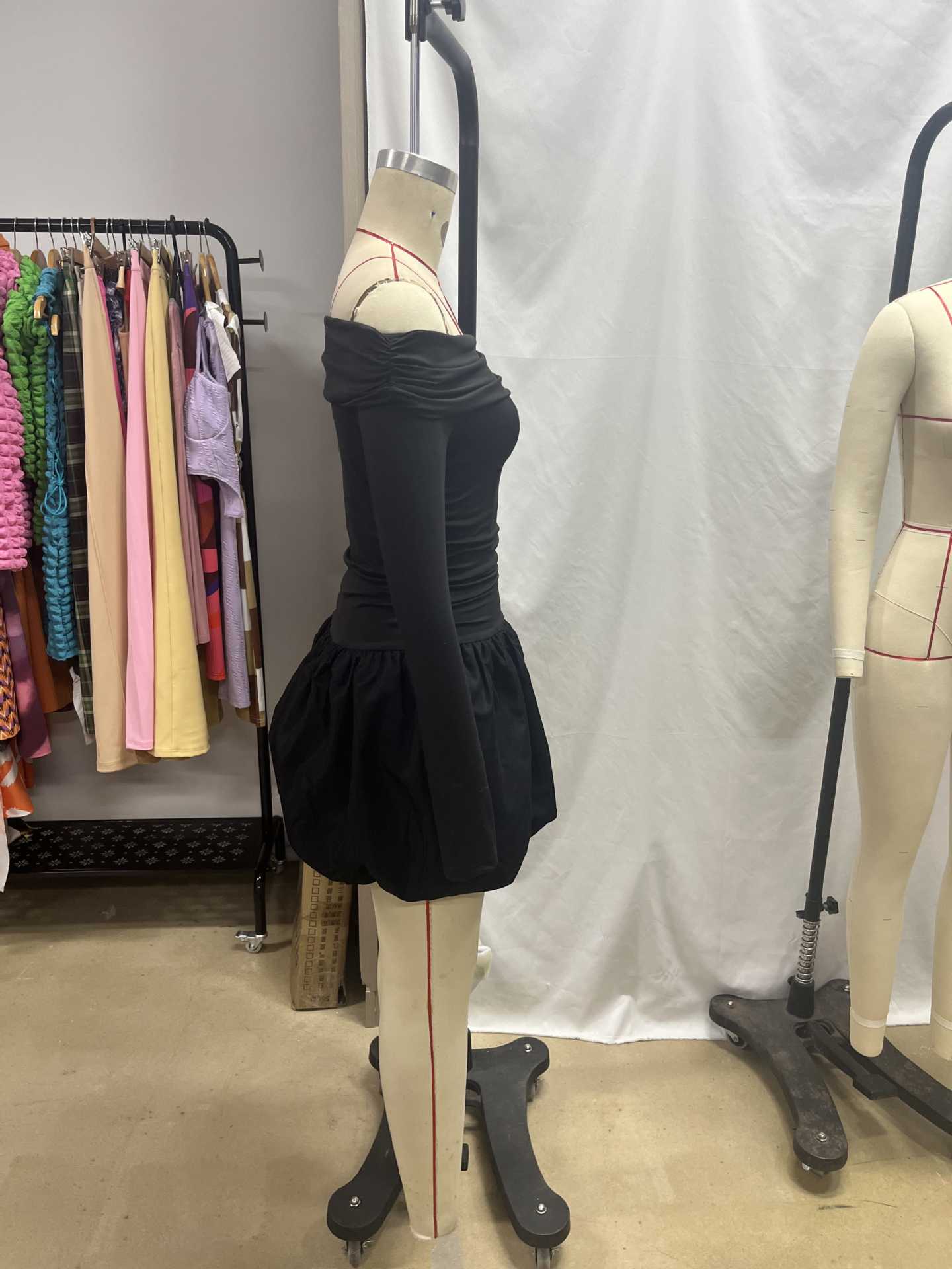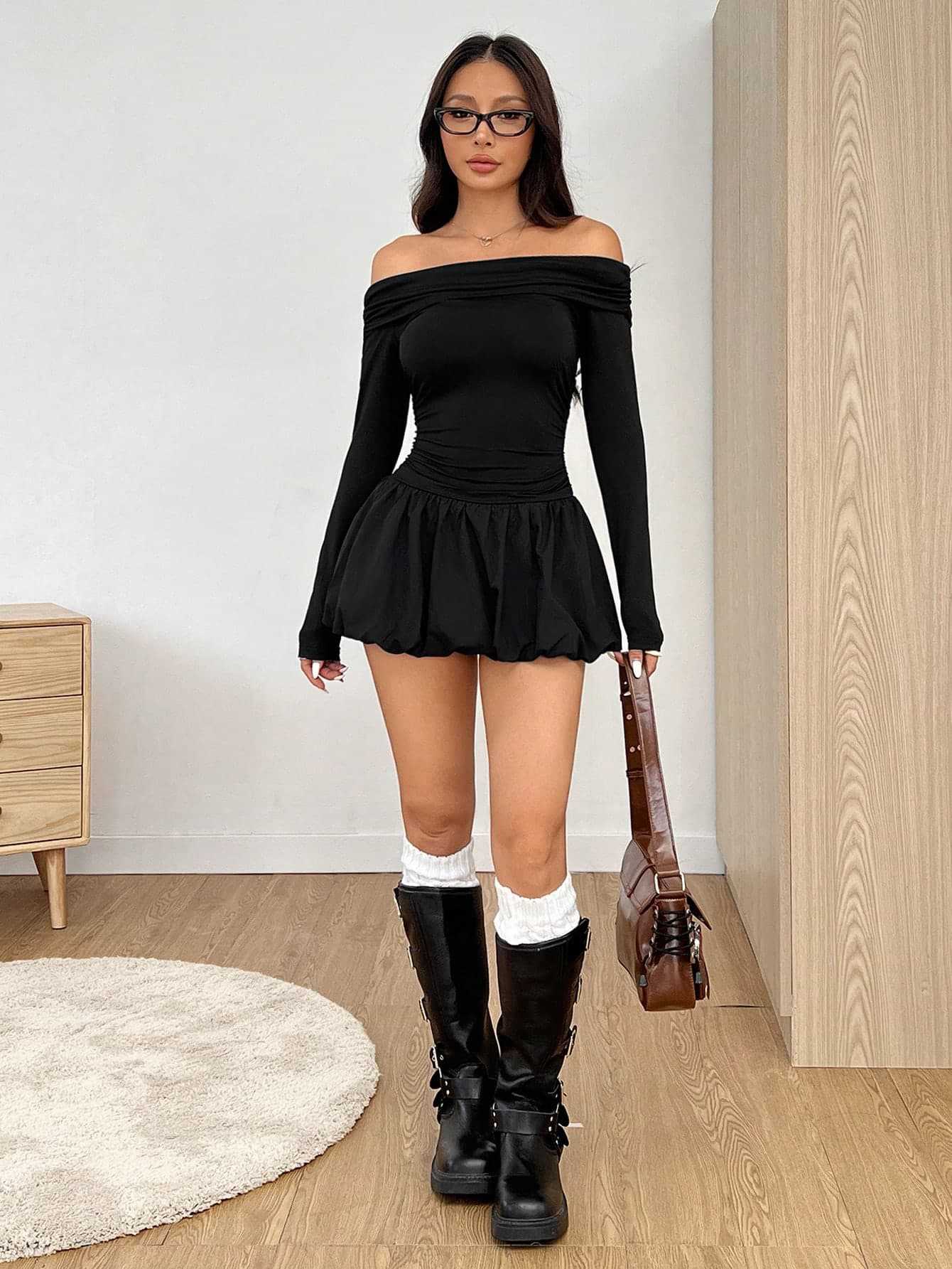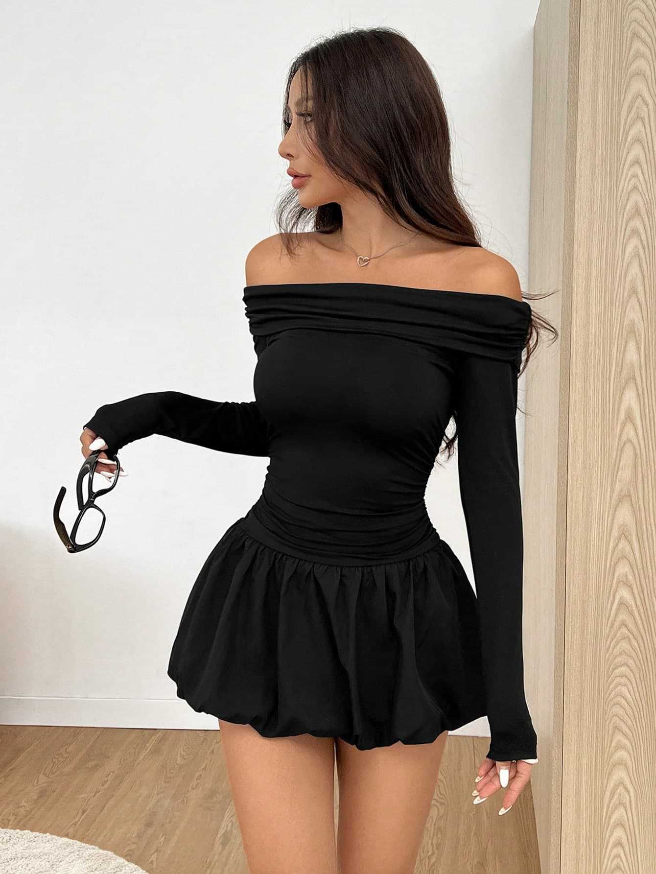 Off-Shoulder Long-Sleeve Ruffle Dress
